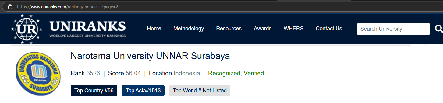 Raih Predikat Kampus Terbaik Versi UniRanks 2025 - Universitas Narotama Peringkat 56 PTN dan PTS se Indonesia